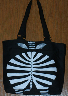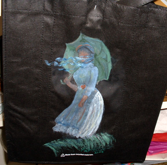 (bookbag, first of two views; no black paint was used) -sold 5.2005, JD