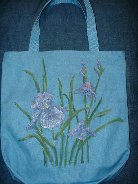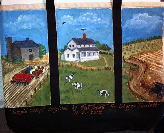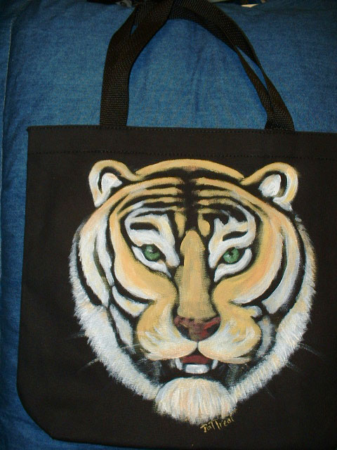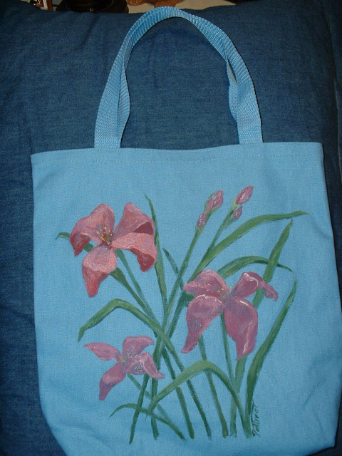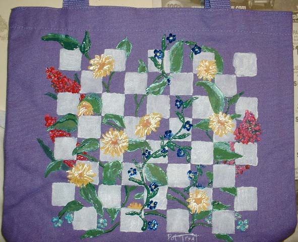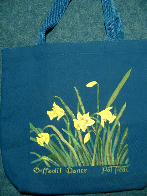 Original paintings by Pat Treat, hand painted on 14w x 13h x 3d canvas bags (or canvas aprons)