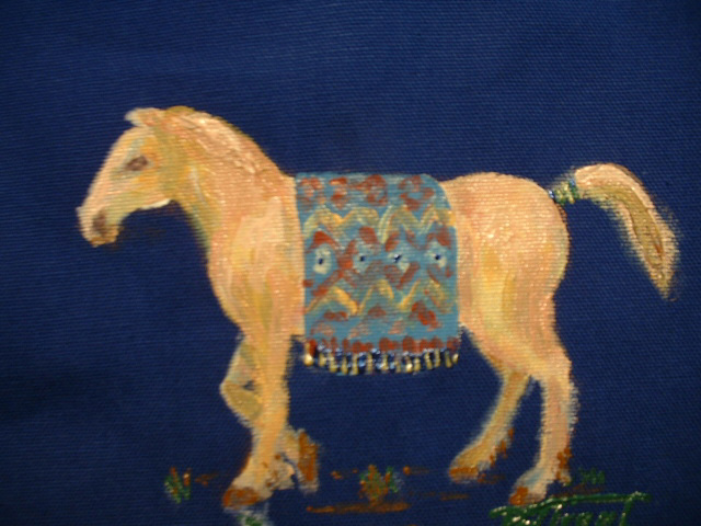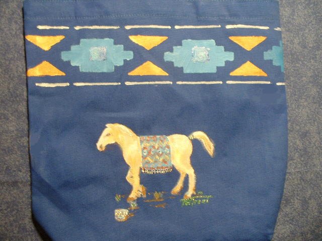 Close-up: Indian Horse -sold (DB, 5.2005). Note: the pattern at top is on both sides of the bag, but is priced as a one-sided bag. close up following