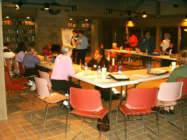 (other side of the room) Madelyn Logan, Darlene Ford (President), Sherri Plocinski, Rose Conyers, Emily Treat, and Helen Long