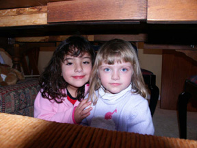 Left: Terry with husband and three kids, L-R: Mary, Terry, Mogens, Thomas and Margaret Below: Vivienne, daugter of Mary, and Hannah, daughter of Margaret (picture 12/26/2004) |